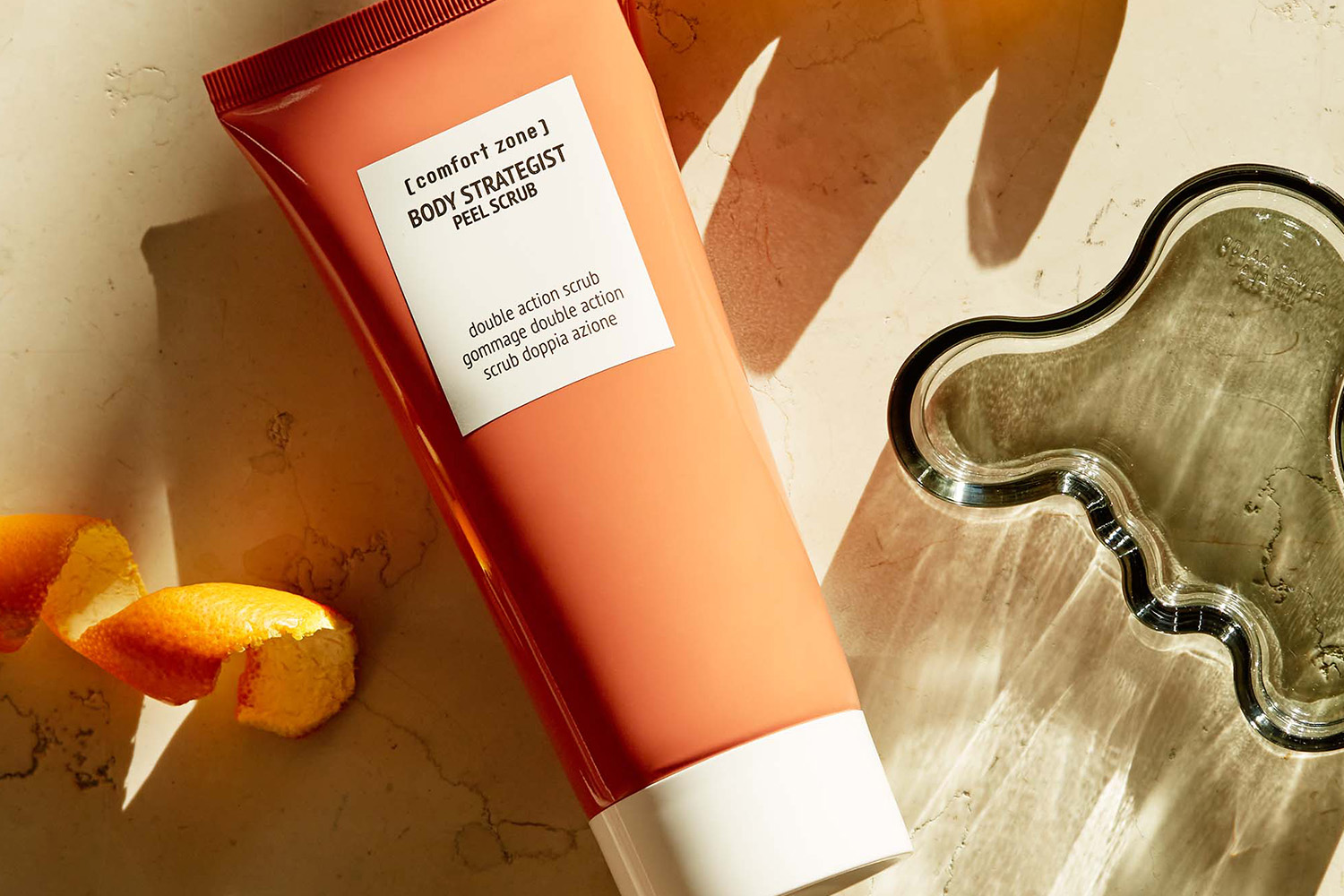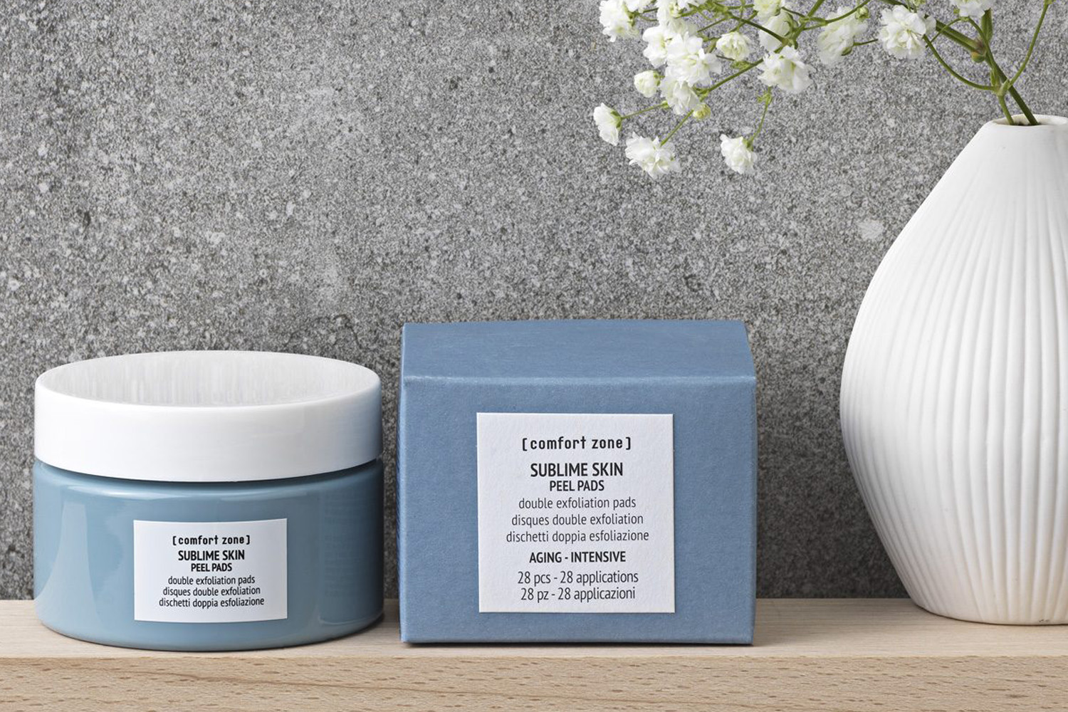 Ексфоліанти на основі AHA, такі як скраб для тіла BODY STRATEGIST PEEL SCRUB від [ comfort zone ] або пілінг диски для обличчя SUBLIME SKIN PEEL PADS, поєднують природне легке відлущування гліколевою кислотою з механічним для більш ефективного результату.