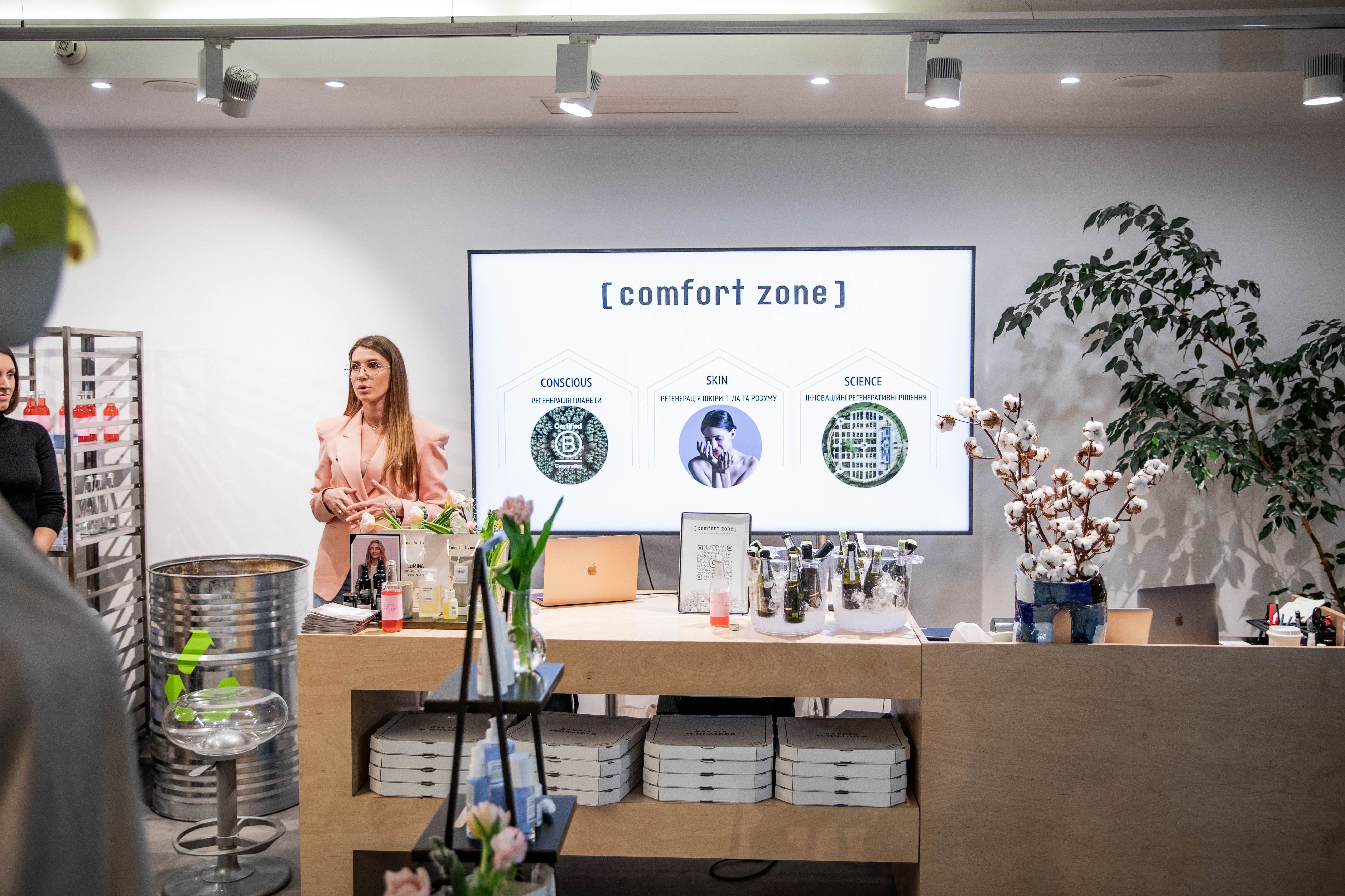 Лінійку Luminant представила бренд-директорка [ comfort zone ] Олеся Божко та бренд-тренерка Юлія Шопяк. Спікерки познайомили гостей ближче з концепцією сталого розвитку та свідомого ставлення до довкілля, здоров’я і краси, які є основою філософії [ comfort zone ].