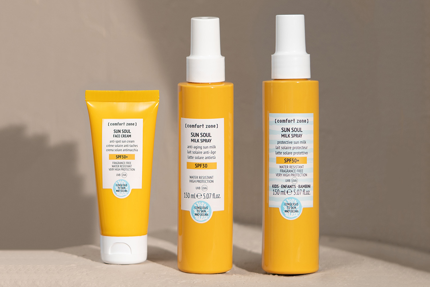 [ comfort zone ] створює продукти, які виходять за рамки просто захисту від сонця. Зосереджуючись на свідомому догляді за шкірою, ми працюємо над створенням чистих, науково обґрунтованих формул з високою концентрацією інгредієнтів природного походження та високотехнологічних компонентів. Колекція засобів SUN SOUL розроблена для одночасного захисту та живлення вашої шкіри під час перебування на сонці, а також дбайливого догляду після сонячних ванн.