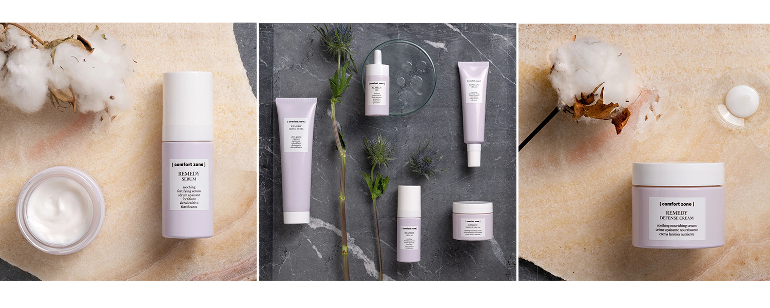 Шукайте очищувальні тонізуючі та зволожуючі засоби, які містять органічні інгредієнти та високоякісні базові олії. Лінія Remedy [ comfort zone ] без ароматизаторів, та на 90% складається з компонентів натурального походження. До лінії входить м'який очищуючий засіб і освіжаючий тонік, які готують шкіру до кращого засвоєння пребіотиків та допомагають підтримувати здоровий мікробіом в найбільш природному стані.