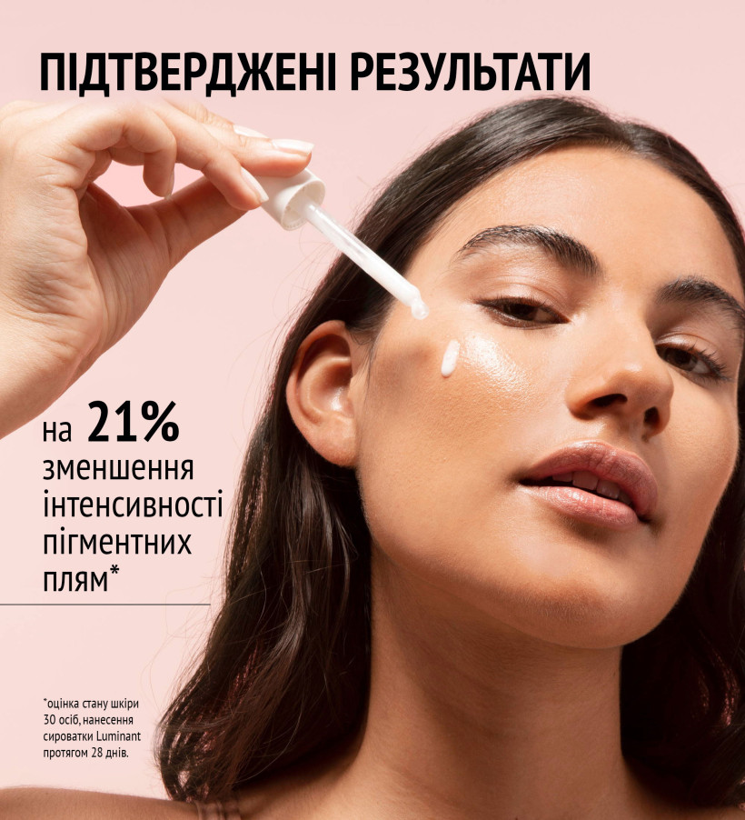 Відкрийте для себе нову Сироватку Luminant - концентрований косметичний засіб, клінічно протестований для боротьби з пігментними плямами. Інноваційна технологія 3-BRIGHT TECHNOLOGY, що поєднує дерматологію та природу, допомагає боротися з пігментними плямами, зменшуючи їх видимість та висвітлюючи колір обличчя.